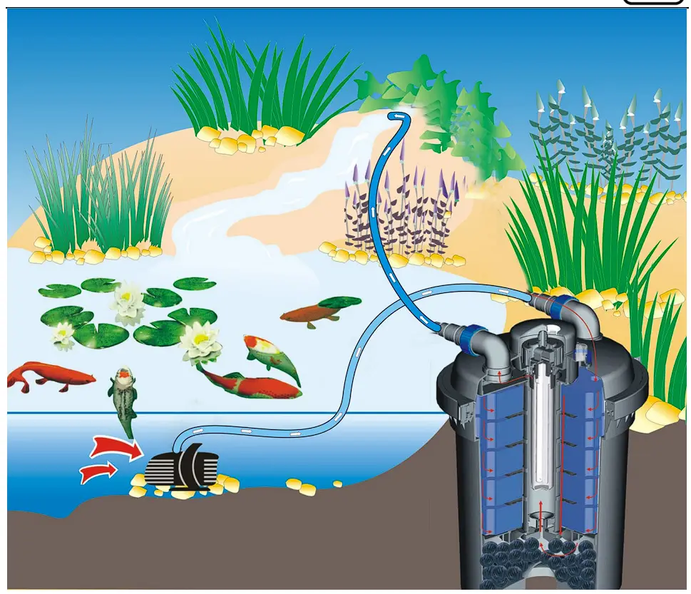 - Pressure pond filters are exclusively designed for filtering pond water with typical impurities.