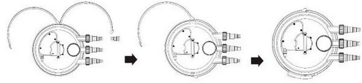- On the filter cover/lid, there are three connections equipped with hose tails: