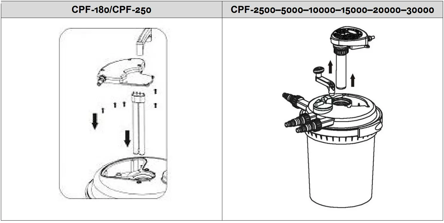 - If the quartz glass tube or the upper part of the UVC filter is damaged, the pond pressure filter cannot be used.
