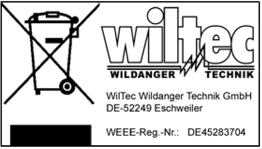 The company WilTec Technik GmbH has been registered in the German registry EAR under the WEEEregistration number DE45283704.