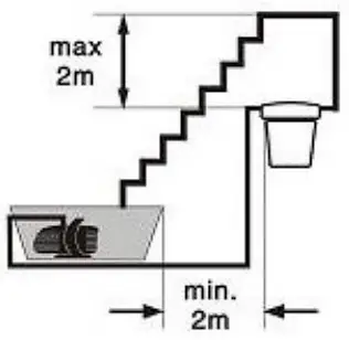 - The device must be installed out of water. The distance from the device to the pond must be at least 2 m.