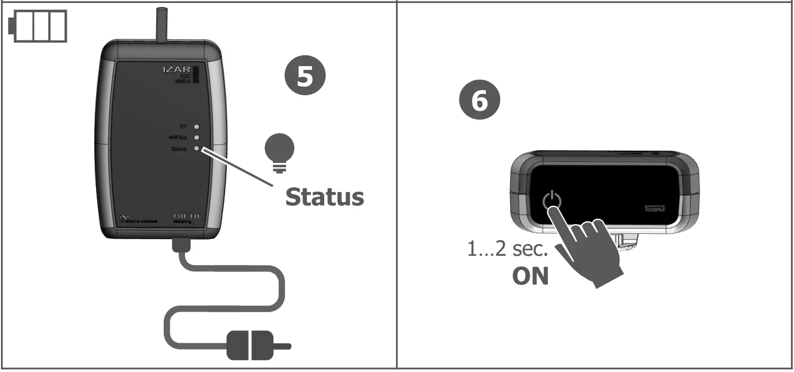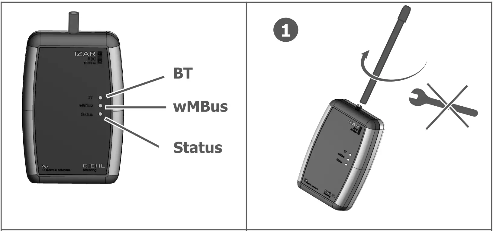 | wMBus | Green Red | Short green flashing: wMBus message received Short red flashing: message is being sent |