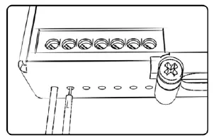 To input wires into the PC6 fi rst remove the rubber plug on the backside of the unit and loosen the screw for the corresponding input. Using a 22-24 gauge wire, strip about 10mm from its end. Push the wire into the hole of the PC6 until it stops and then tightens the screw. Make sure to reinstall the rubber plug.