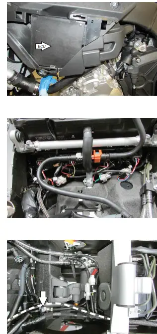 - Remove the left-hand side cover and the cover over the ECU.