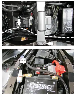 - The unit can also be installed on the right side of the battery if desired. Reinstall the fuel tank, cover and seat.