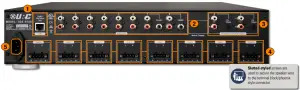 3. Assignable Preamplifier Outputs: Two (2) assignable preamplifier outputs, each with 12V programmable triggers are capable of 150mA of current.
