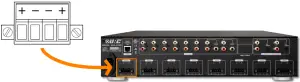 ![]() | CAUTION! Verify the polarity of the speakers and the wires before returning the phoenix connector into the terminal block on the amplifier |