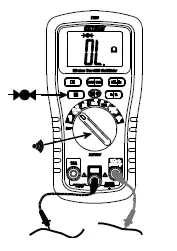 - Always discharge capacitors and remove power from the device under test before performing Diode, Resistance or Continuity tests.