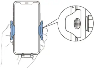 - Find the press position (A dent place with tiny microdots on the side of clamp arms) and then push the clamp arms to tighten your phone firmly.