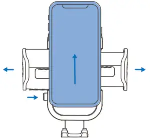 - Press the quick release button, the clamps arms will automatically open. Then, adjust the legs (bottom tray) according the size of your phone, tighten up the clamps arms to hold your phone firmly.