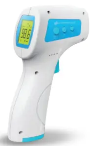 The Packard Bell Non-Contact thermometer is a safe and quick way to check temperatures and avoid contact and contamination. It measures the infrared energy radiated from the skin (forehead area) through the thermometer’s infrared sensor and converts that to the equivalent oral temperature value.