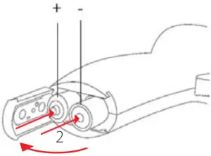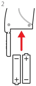 - Insert 2 new alkaline AAA batteries (not included) being sure to align them properly as shown.