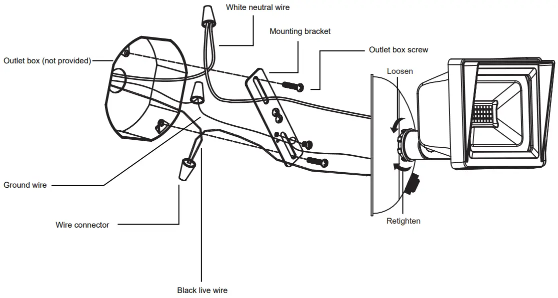 - To adjust the light, loosen the side bolt connected to the knuckle arm to adjust the fixture up or down. Retighten bolt to secure the fixture in the desired position.