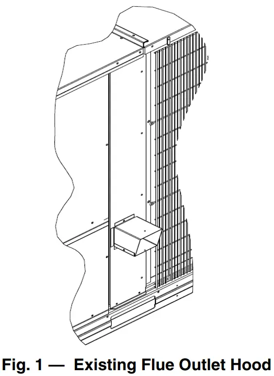 - Remove existing flue hood from unit. Save screws. (See Fig. 1.)