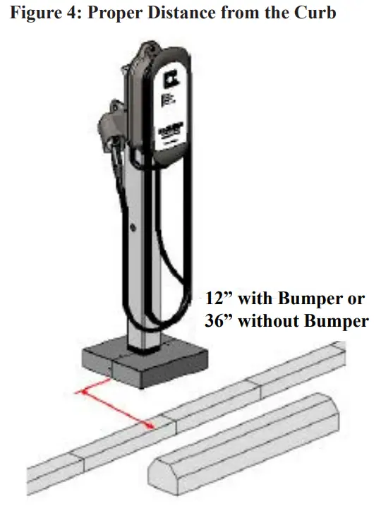 - If a bumper block is in place, the center of the pedestal base should be situated 12” behind the curb.
