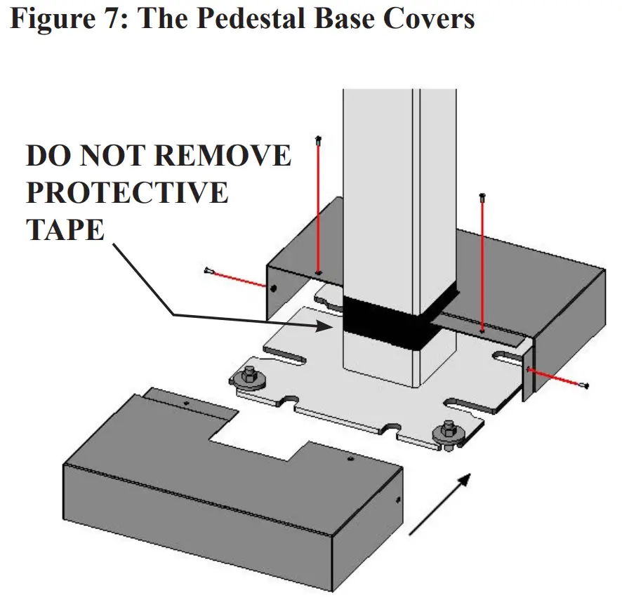 NOTE: DO NOT REMOVE THE TAPE at the bottom of the pedestal. This tape is provided for finish and weather protection of the pedestal post.