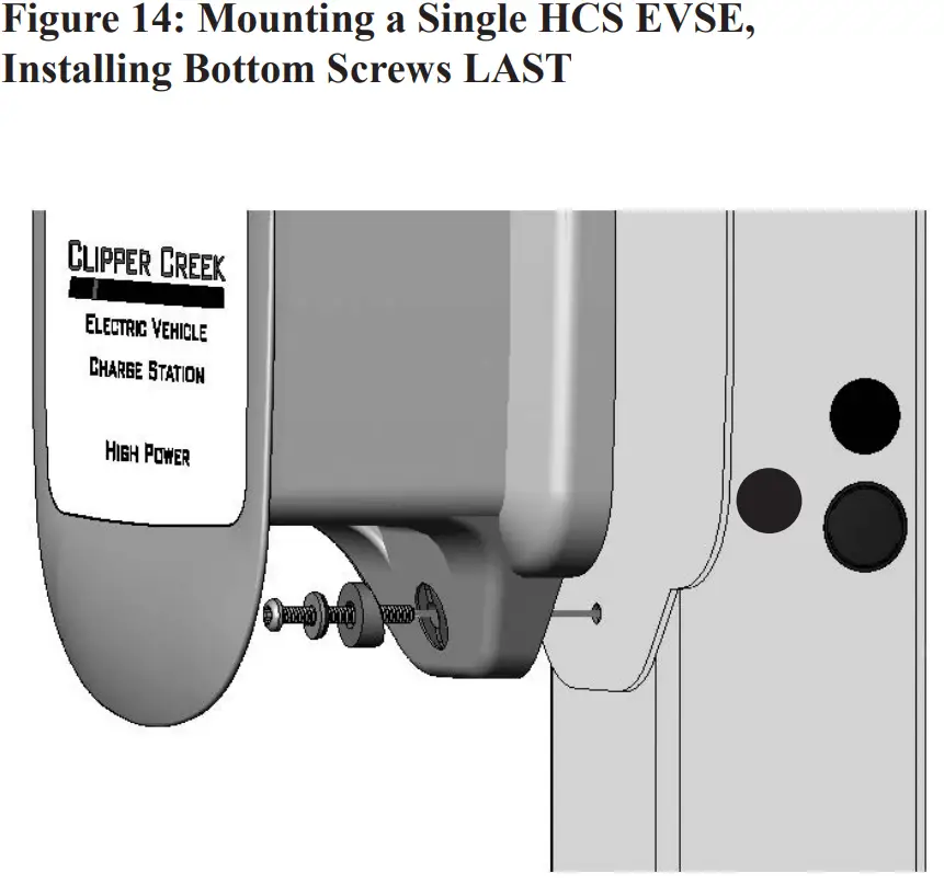 The correct style to use with the HCS Pedestal is the Perpendicular Screw Mount. These washers are included with the HCS Charging Station and do not accompany this kit. Refer to Figure 12. - Align the two screw holes on the top and bottom of the EVSE with the corresponding threaded inserts on the mounting plate.