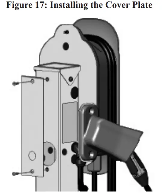 - Hold the EVSE mounting plate against the front side of the pedestal post as shown in Figure 10.