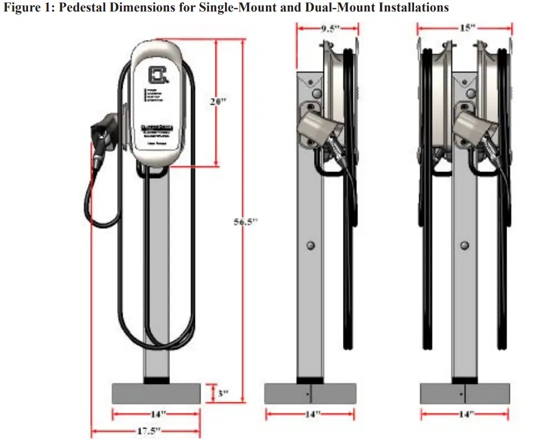 - One (1) ClipperCreek Dual-Mount HCS Pedestal Kit.