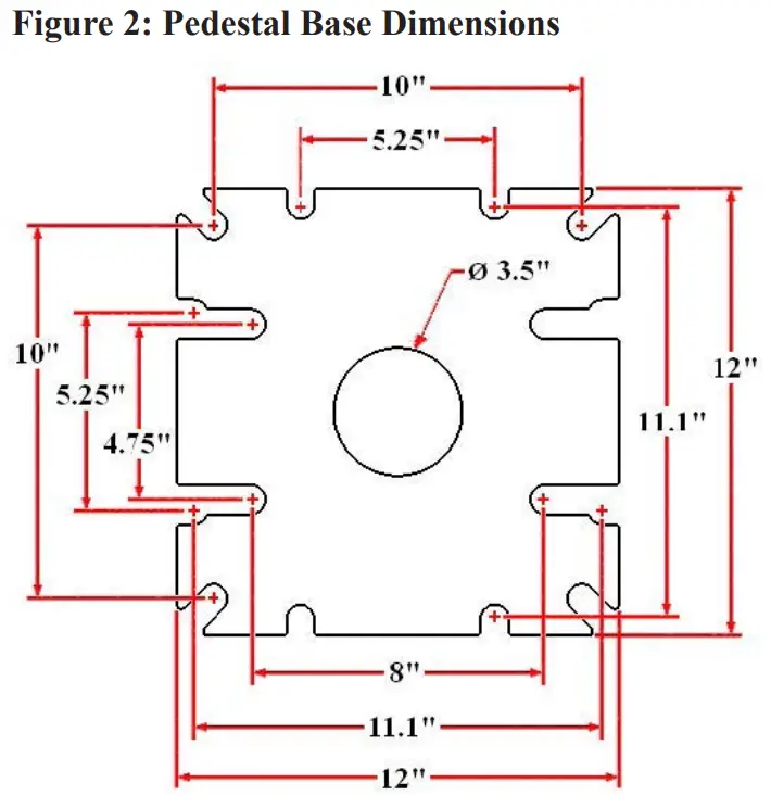 - The anchor bolts, nuts and washers used for the installation of the pedestal base are not included in the pedestal kit and must be purchased seperately.