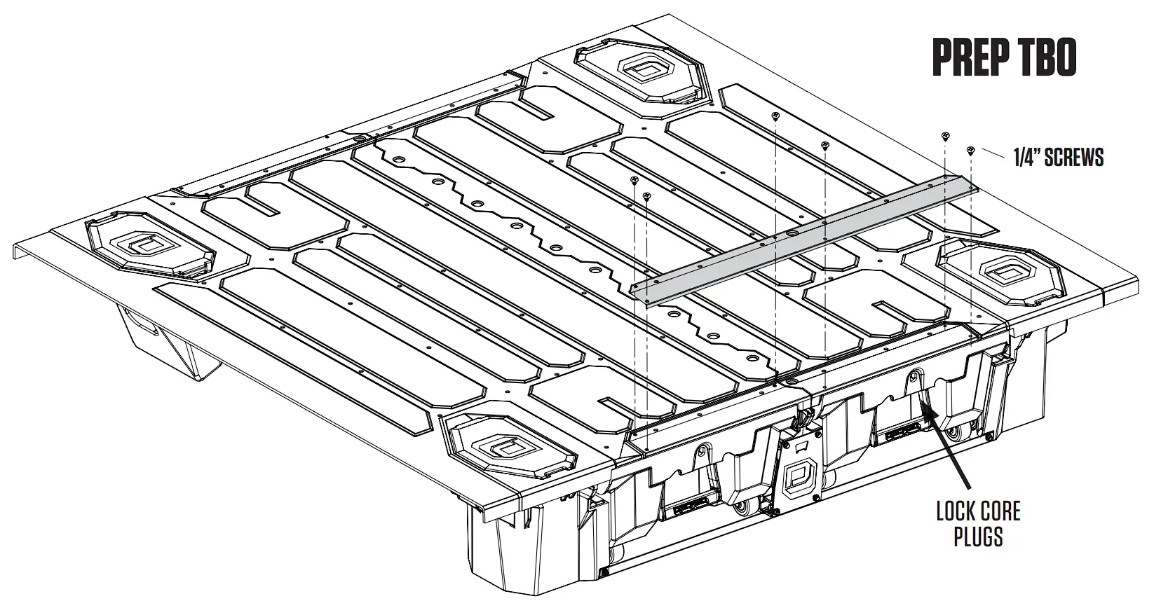- Grab your buddy to help you lift the driver side assembly into the driver side of the truck bed. Lift the passenger side assembly into the passenger side of the truck bed and seat the passenger side deck on the upstanding, cylindrical vert bosses.