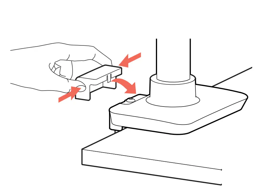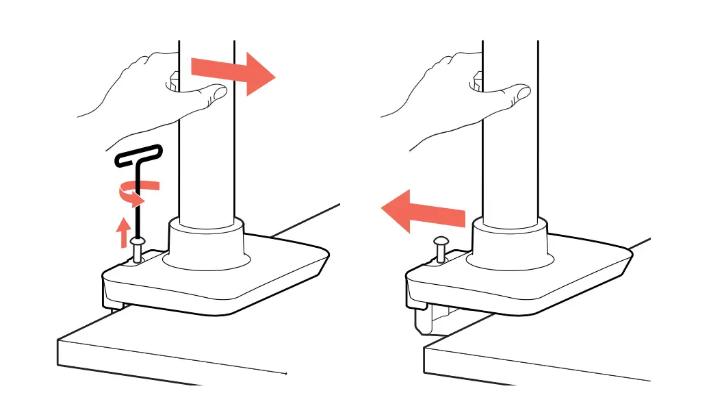Removing from desk: Remove monitors then put pressure forward while loosening boll.