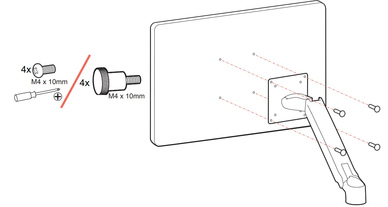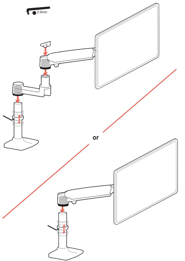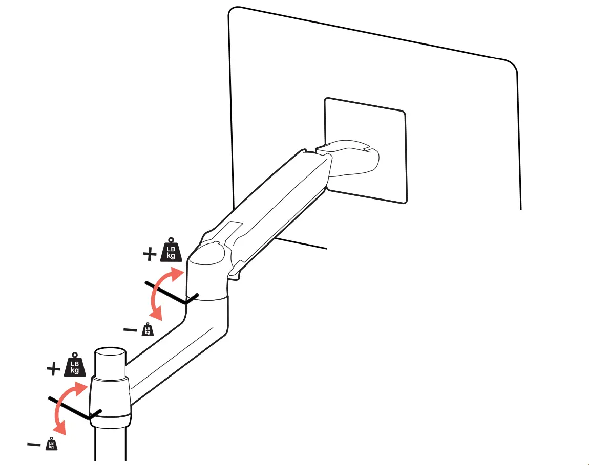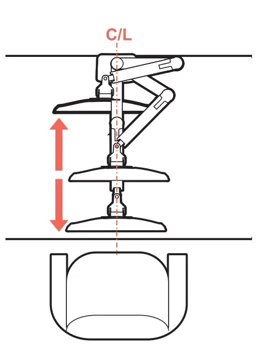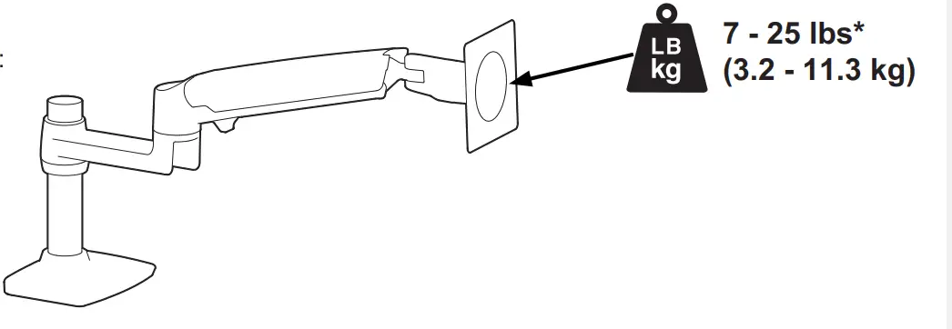 The lower most range of motion for vertical lift is decreased up to 4.5″ (114 mm) when arm is adjusted to hold over 20Ibs (9 kgs).
