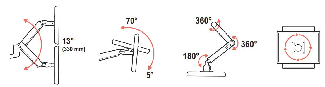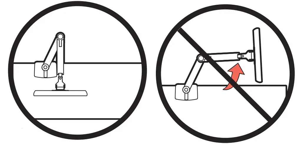 CAUTION: For Desk Clamp installations: Do Not rotate display past edge of desk