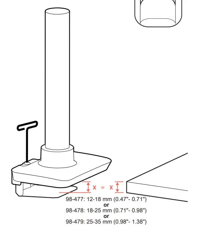 Warning: Failure to match your desk thickness with your clamp specifications will cause an unstable condition and may result in equipment damage and or personal injury.