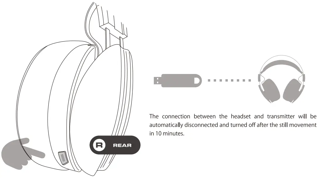 Press the Power Button in 3 seconds during the operation, the headset will be turned off.