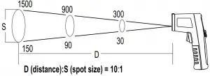 Make sure that the target is larger than the meter’s visual spot size. The smaller the target, the closer you should be to it. The relationship between distance and spot size is 10:1