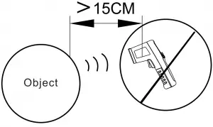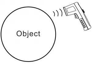 - To measure temperature, the measuring distance 5 ~ 15cm; press the trigger start measuring, approx 1s, the meter display measuring temperature to measurement complete.