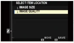 Press the focus stick (focus lever) up or down to highlight ADD ITEMS and press MENU/OK. Options that can be added to “my menu” are highlighted in blue.