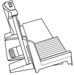 Collects the food slices during slicing and stores neatly underneath the unit when not in use.