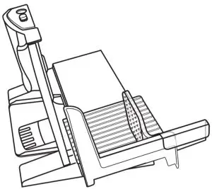 Important: Do not operate this appliance without the sliding food guide and safety food holder in place. - Bring the safety food holder and sliding food guide back to the starting position and repeat this action for the desired number of slices.