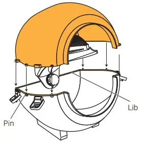 - Install the outer shell cover(top). Make sure that the four pins on the left and right sides are tight and that there are no gaps in the back.