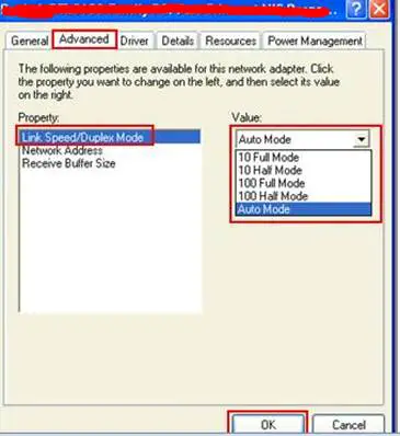 Suggestion: make sure that the NIC’s speed is in ‘auto mode’ or try different speeds with different duplexes.