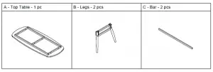 - Lay Top Table (A) onto clean smooth surface as carpet or cardboard. Please note the indicating letter for homing guidance