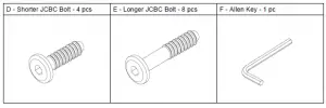 - Fix Metal Support. Secured by Shorter JCBC Bolt (D). Tighten by using Allen Key (F)