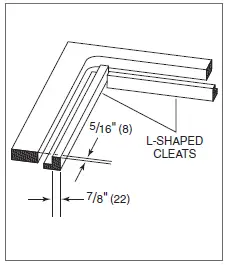 cutout. The top edge of the cleat cannot be wider than 7/8″ (22) and is attached 5/16″ (8) below the surface of the countertop. Refer to the illustration below. Attach the