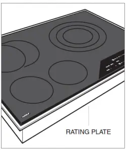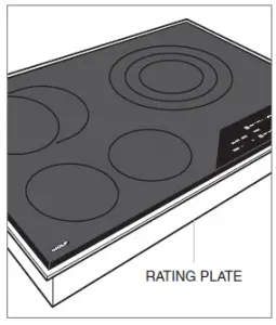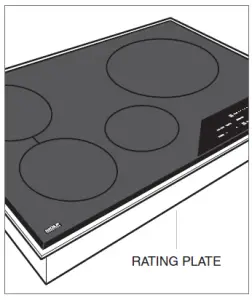 Important product information, including the model and serial number, are listed on the product rating plate. The rating plate is located on the bottom of the cooktop. Refer