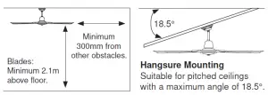 - Additionally, it is recommended to provide the blade with a minimum clearance from the floor of 2.1m, and from other obstructions of at least 300mm. Failure to follow these instructions can result in injury or equipment damage