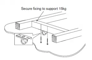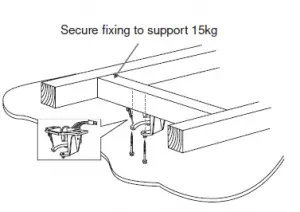 - The mounting bracket must be fixed to a solid structural member, such as a ceiling joist or a securely fixed noggin, and be capable of supporting 15 kg.