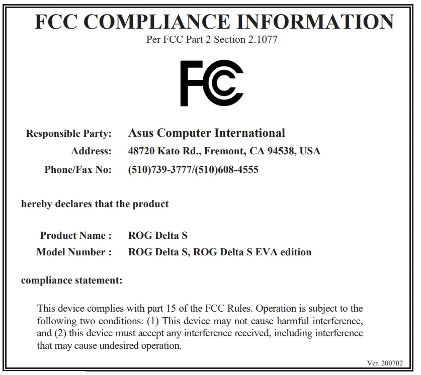 “Hereby, ASUSTeK CCOMPUTER INC. declares that this headset is in compliance with the essential requirements and other relevant provisions of Directive 2014/53/EU. ”