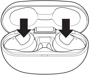 Put the units into the charging case, then touch and hold the touch sensor control panel on the left and right unit simultaneously. When the indicators (red) start flashing (after about 10 seconds), release the touch sensor control panel.