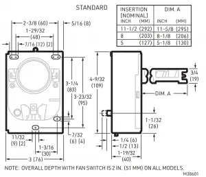 | Model | Sensing Element | Manual Fan Switch | Scale Range | Fan-on Range | Fan-off Range | High Limit Range |