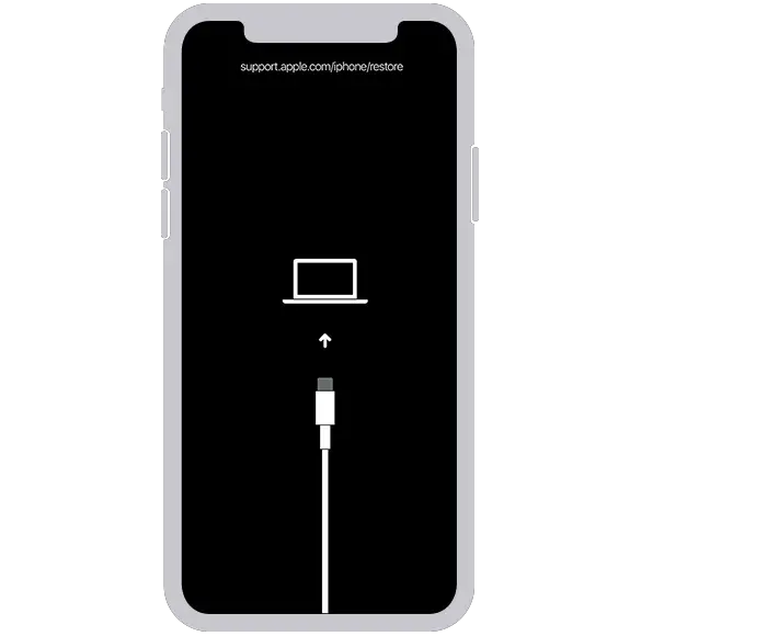 - Keep holding the button until you see the recovery mode screen on your iPhone, then let go.