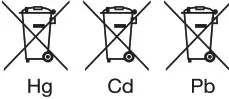In case of batteries, accumulators and button cells containing more than 0.0005 mercury, more than 0.002% cadmium or more than 0.004% lead, shall be marked with the chemical symbol for the metal concerned: Hg,Cd or Pb respectively. Please Refer to the below symbol: