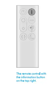 Press this button to scroll through the information being monitored by your Dyson purifying fon. Information about air quality, temperature, humidity and filter levels is shown on the LCD screen.
