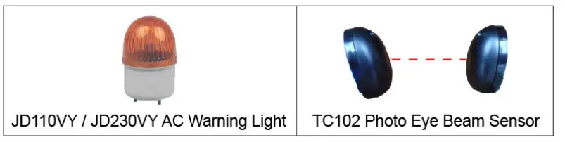 One wire of the warning light should be connected to the “4” terminal, another should be connected to the “5” terminal. - Photocell Beam System (PBS) (Normally Closed)